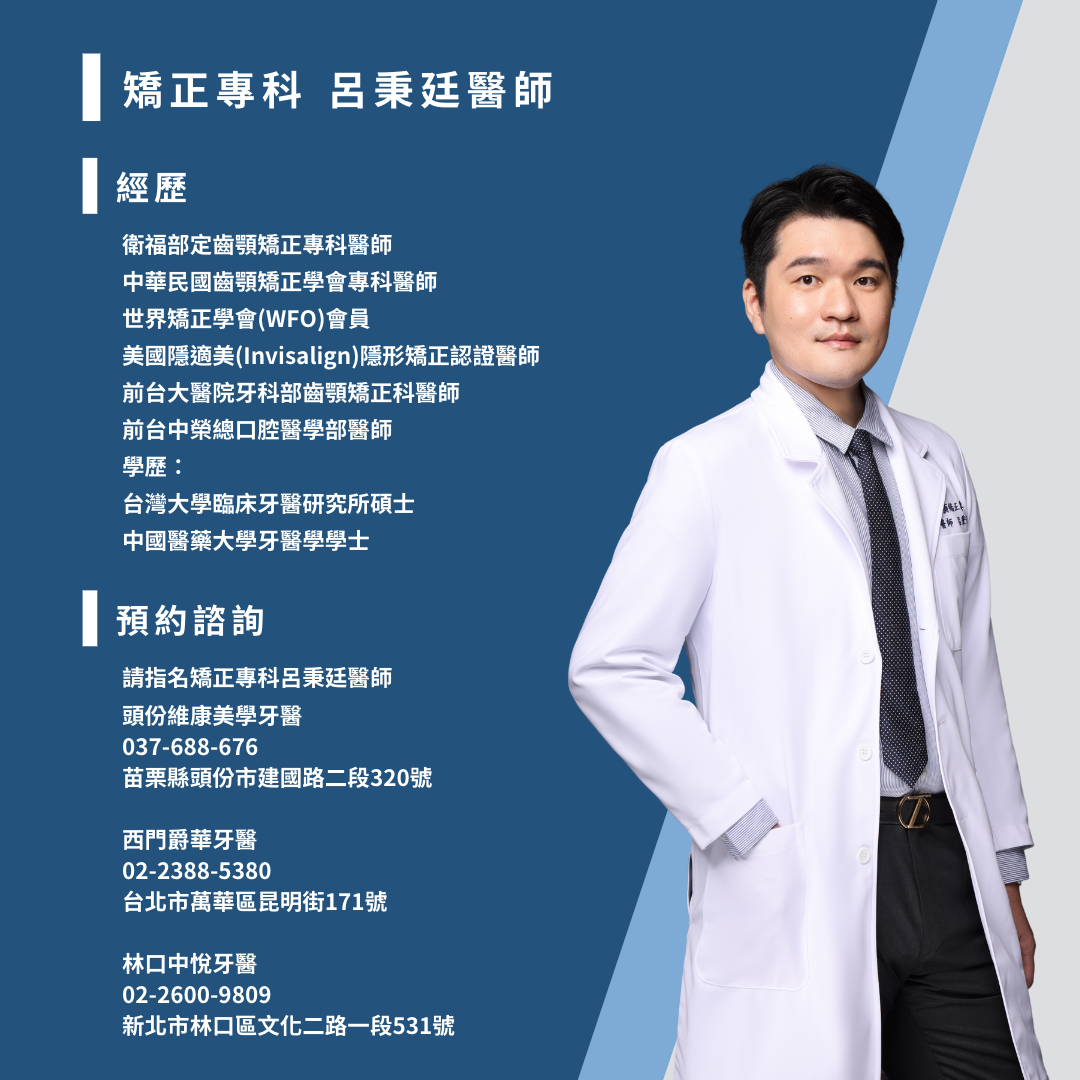 齒顎矯正專科呂秉廷醫師-牙齒矯正,齒顎矯正,頭份牙齒矯正,竹南隱適美牙齒矯正
